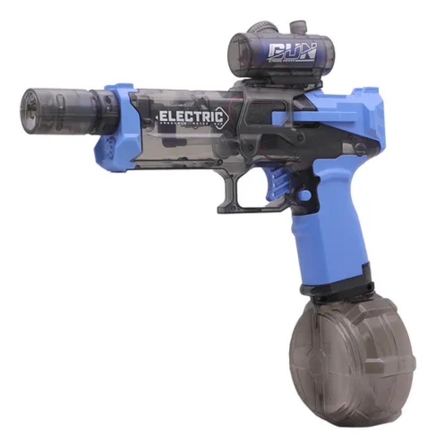 Pistola de agua eléctrica recargable, potente y divertida, ideal para juegos al aire libre. Su sistema a batería permite disparos continuos sin esfuerzo, mientras que la luz integrada le suma un efecto visual llamativo para jugar de día o al atardecer. Perfecta para verano, playa, piscina o patio.